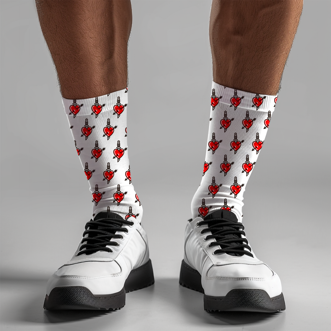These cushioned DTG crew socks combine style and comfort in a one-size-fits-most design. With fully cushioned heel-to-toe support, they provide all-day comfort, while the DTG printing process ensures ultra-crisp, crease-free graphics. Perfect for tattoo fans and anyone looking to make a bold statement with their socks.