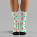 Soft mint crew socks dotted with playful pink cupcakes — a small, joyful detail you notice every time you sit down and kick off your shoes. The cushioned bottoms feel like a gentle pause after a long day, while the stretchy, smooth knit hugs your foot without pinching.