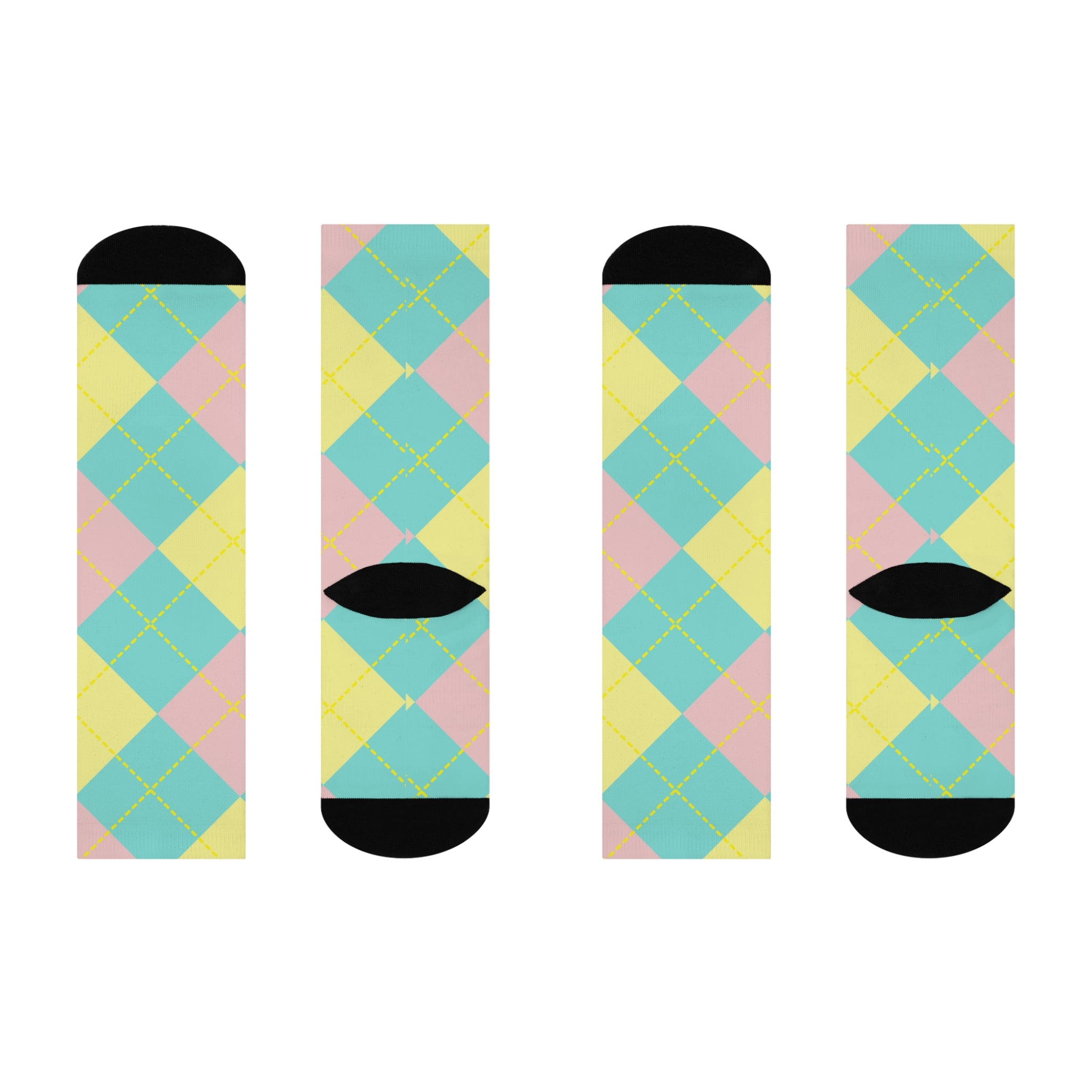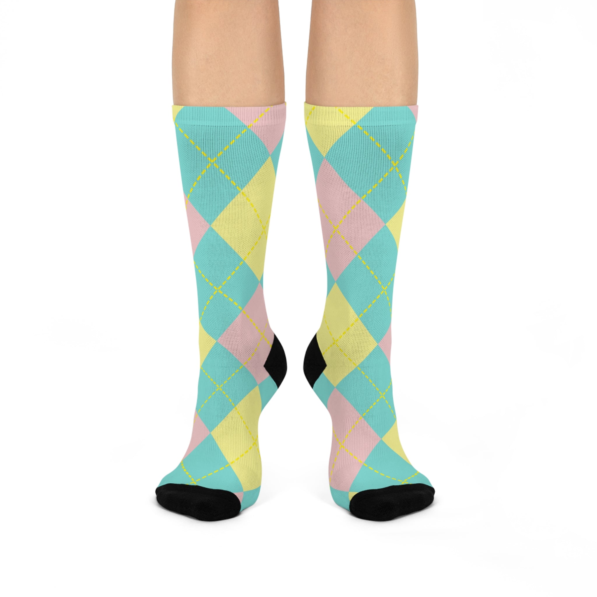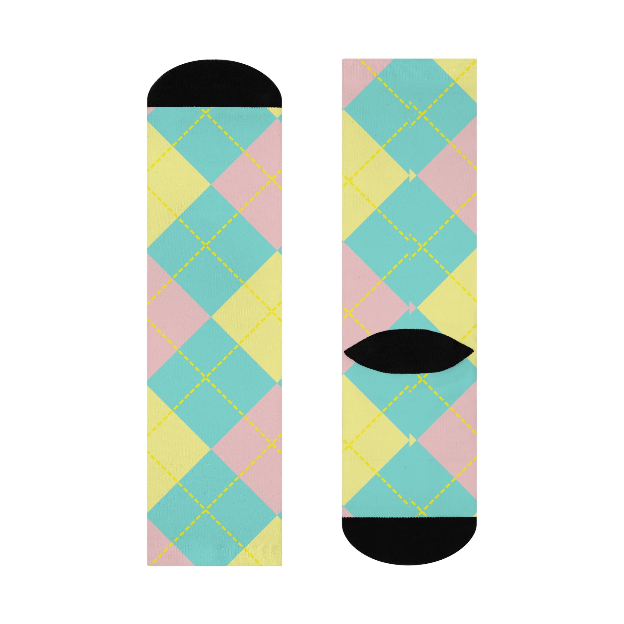 These cushioned DTG crew socks are a one-size style designed with both function and appearance in mind. With the fully cushioned heel-to-toe, these socks provide superior comfort, while the DTG print process allows for ultra-crisp, crease-free printing. Composed of 73% polyester, 18% nylon, 6% spandex, and 3% cotton, these socks are an elevated alternative to the typical sublimation sock and provide a clean, comfortable base for your all-over print designs. .: Material: 73% polyester, 18% nylon, 3% cotton, 6% spandex .: One size: comfortably fits women's size 5 US up to men's size 12 US .: 200 needle knit premium socks .: Cushioned bottoms