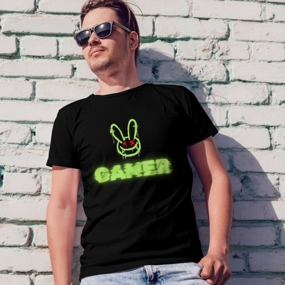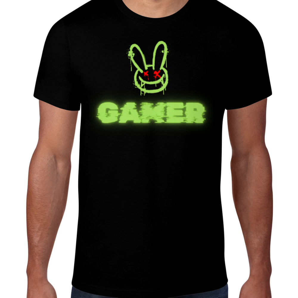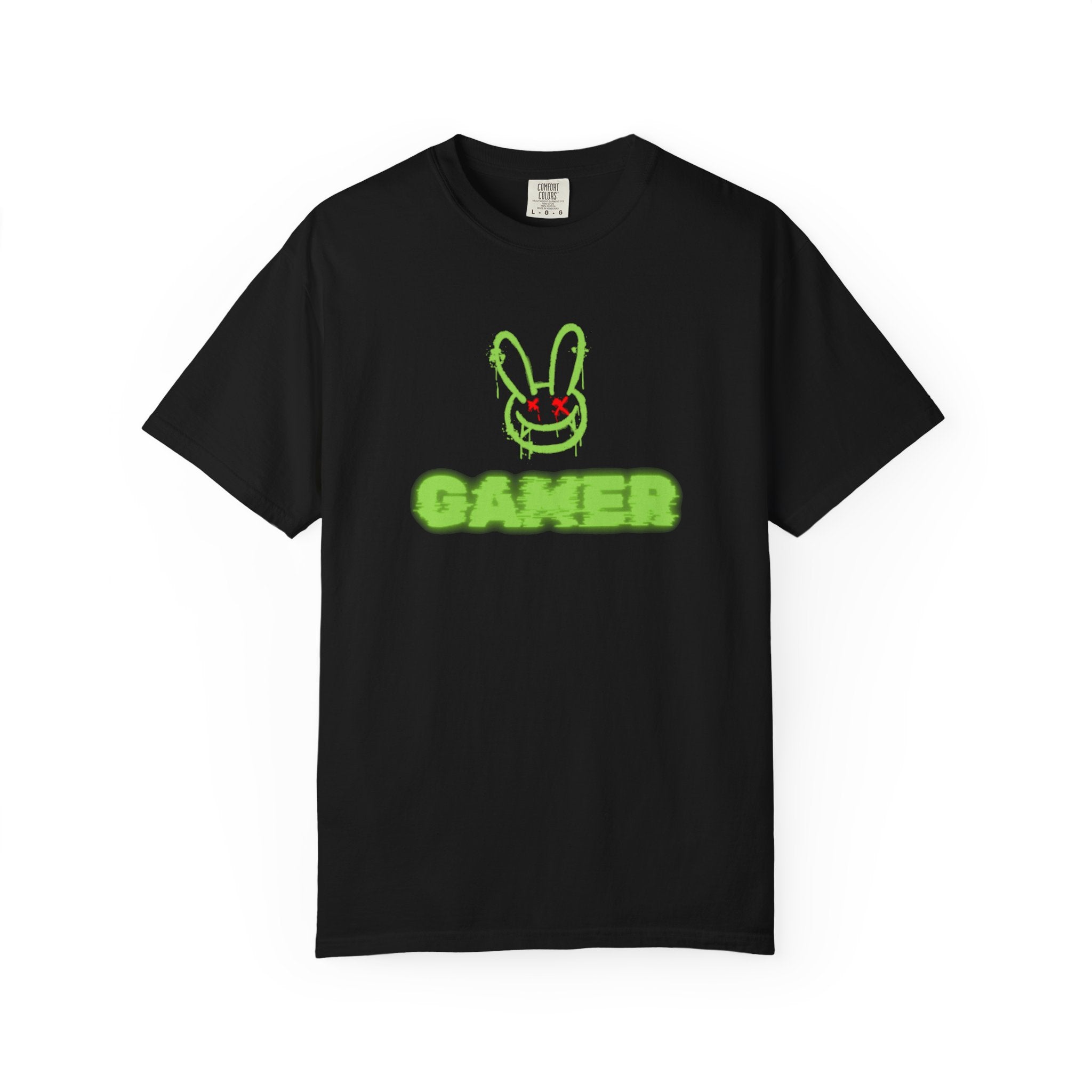Level up your wardrobe with this neon gamer t-shirt featuring a bold dripping bunny face design and grunge-style text. Designed for gamers, streamers, and gaming enthusiasts, this unisex Comfort Colors tee combines style and comfort, making it perfect for gaming sessions, casual outings, or conventions.