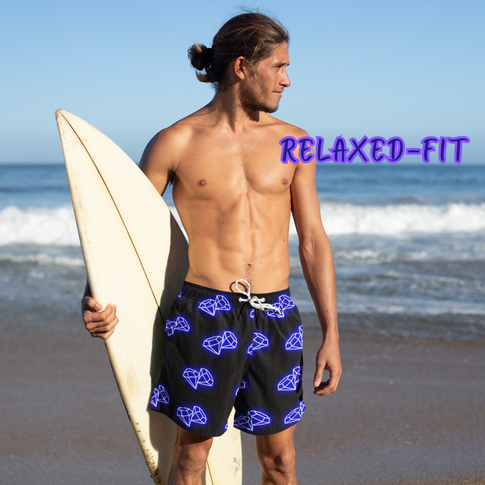 💎⚡ Featuring an electric blue diamond pattern that pops against black, these trunks are made for bold personalities and high-energy summer plans. Whether you're shopping for a bachelor party, festival outfit, or fun gift, these shorts deliver confidence, comfort, and style all in one.