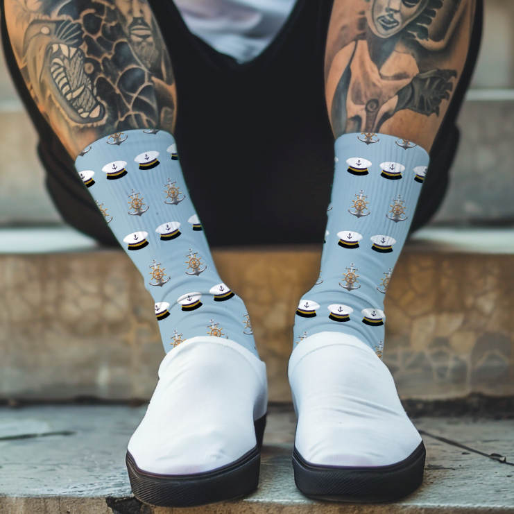 Sail away in style with these Nautical Cushioned Crew Socks. Featuring a playful design with captain’s hats and anchors, these unisex socks bring a maritime touch to your wardrobe. Perfect for nautical enthusiasts or anyone looking for unique and stylish socks.