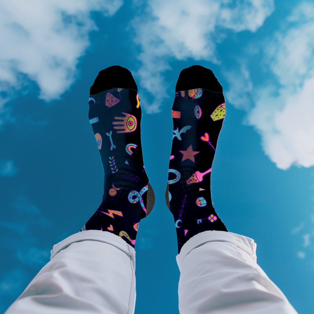 A unique gift for anyone who loves gothic fashion, neon designs, or statement socks.