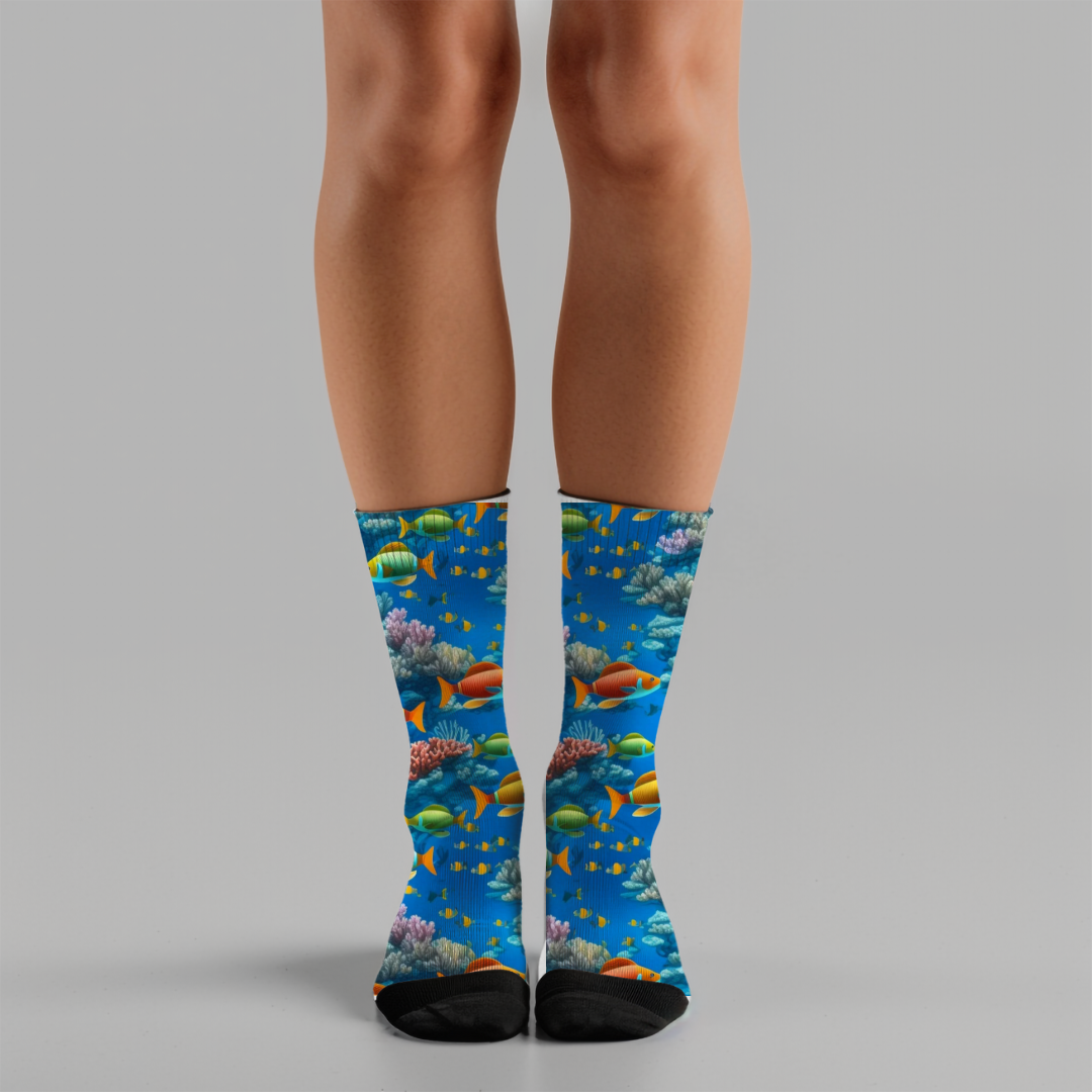 Dive into style with our Ocean Life Socks, featuring a vibrant seascape print that brings the beauty of the ocean to your feet. Perfect for adding a splash of color and aquatic charm to any outfit, these unisex socks combine fun design with all-day comfort. Ideal for casual wear, lounging at home, or gifting to ocean lovers, they make every step feel fresh and lively.