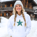 The roomy kangaroo pocket and double-lined hood make it an easy go-to when plans are relaxed and comfort matters. It wears like a trusted layer: warm without bulk, smooth against the skin, and subtly styled so the teal-tinted star stands out without shouting.