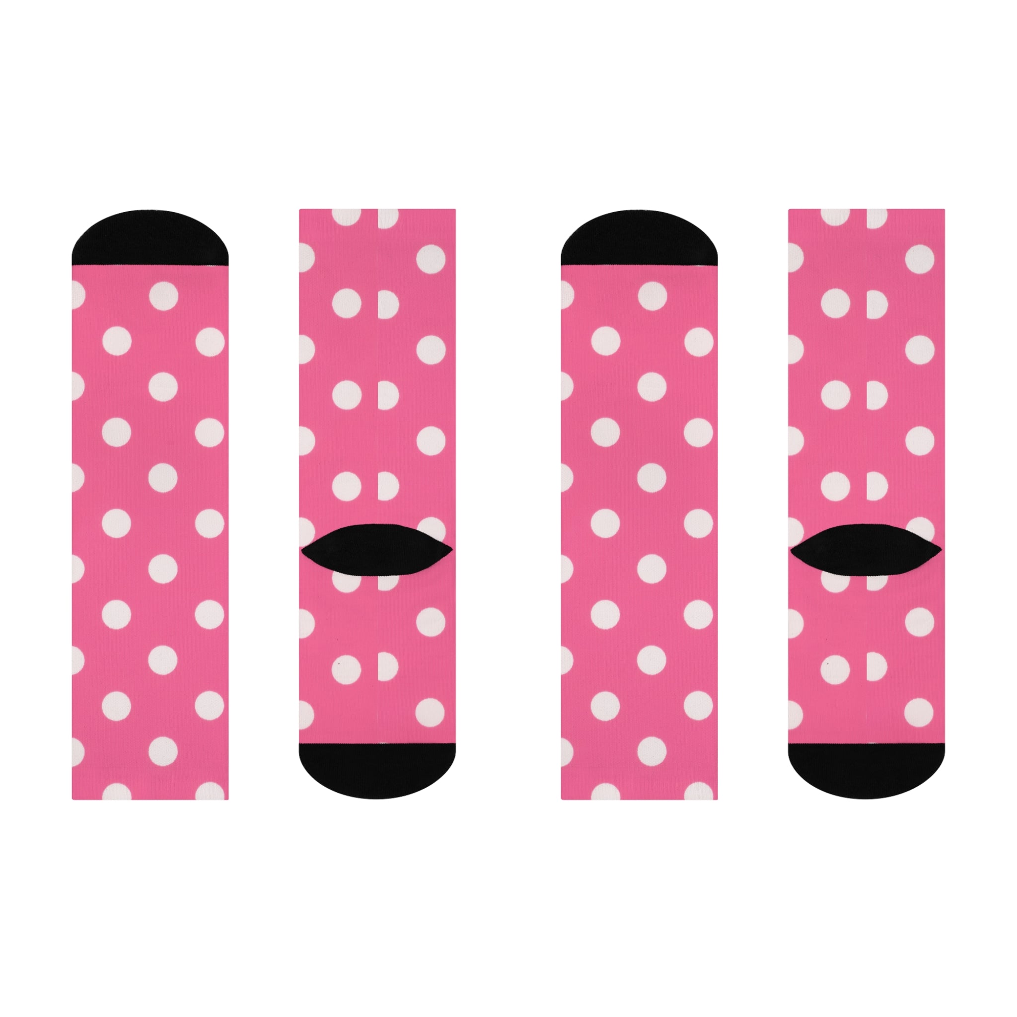 Step up your sock game with these Pink Polka Dot Crew Socks, featuring a playful and stylish polka dot pattern. Designed for both men and women, these cushioned crew socks combine comfort with eye-catching style. Perfect for daily wear, lounging, or adding a fun accent to your outfit, they deliver both practicality and charm.