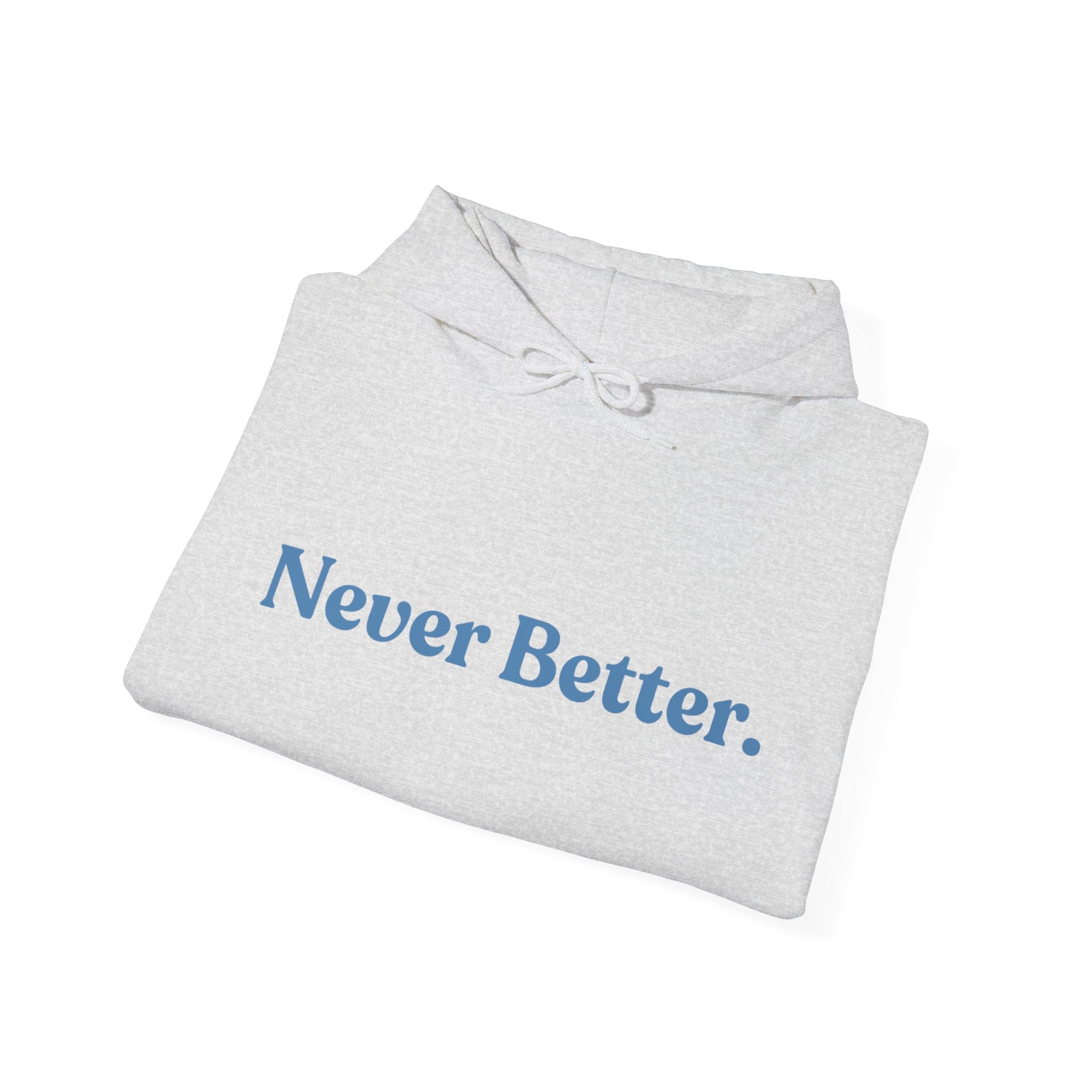 Standout artwork: “Never Better” graphic on the front for a positive, eye-catching message