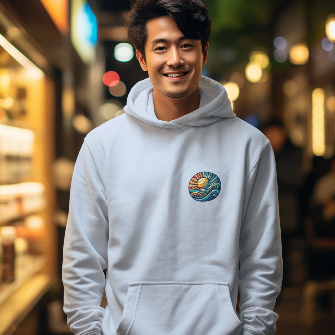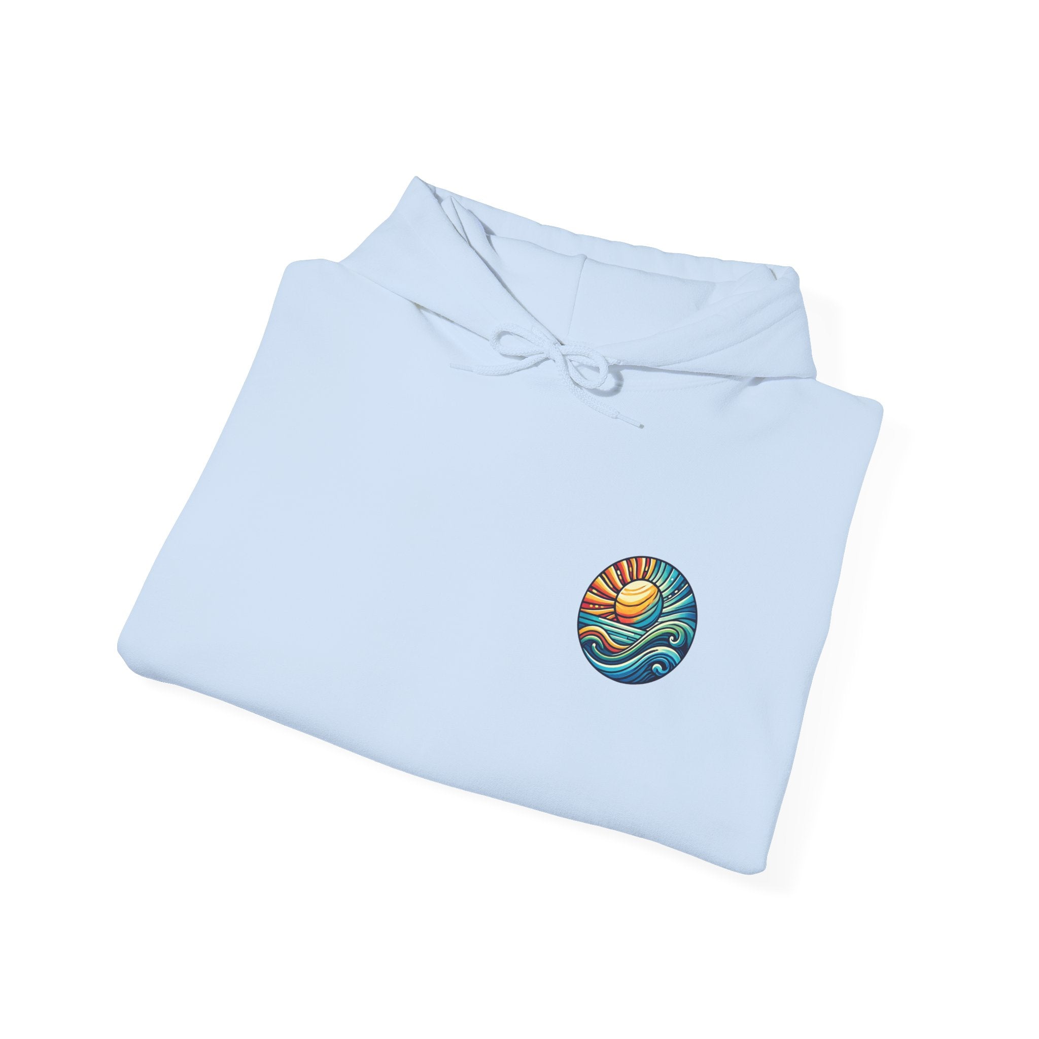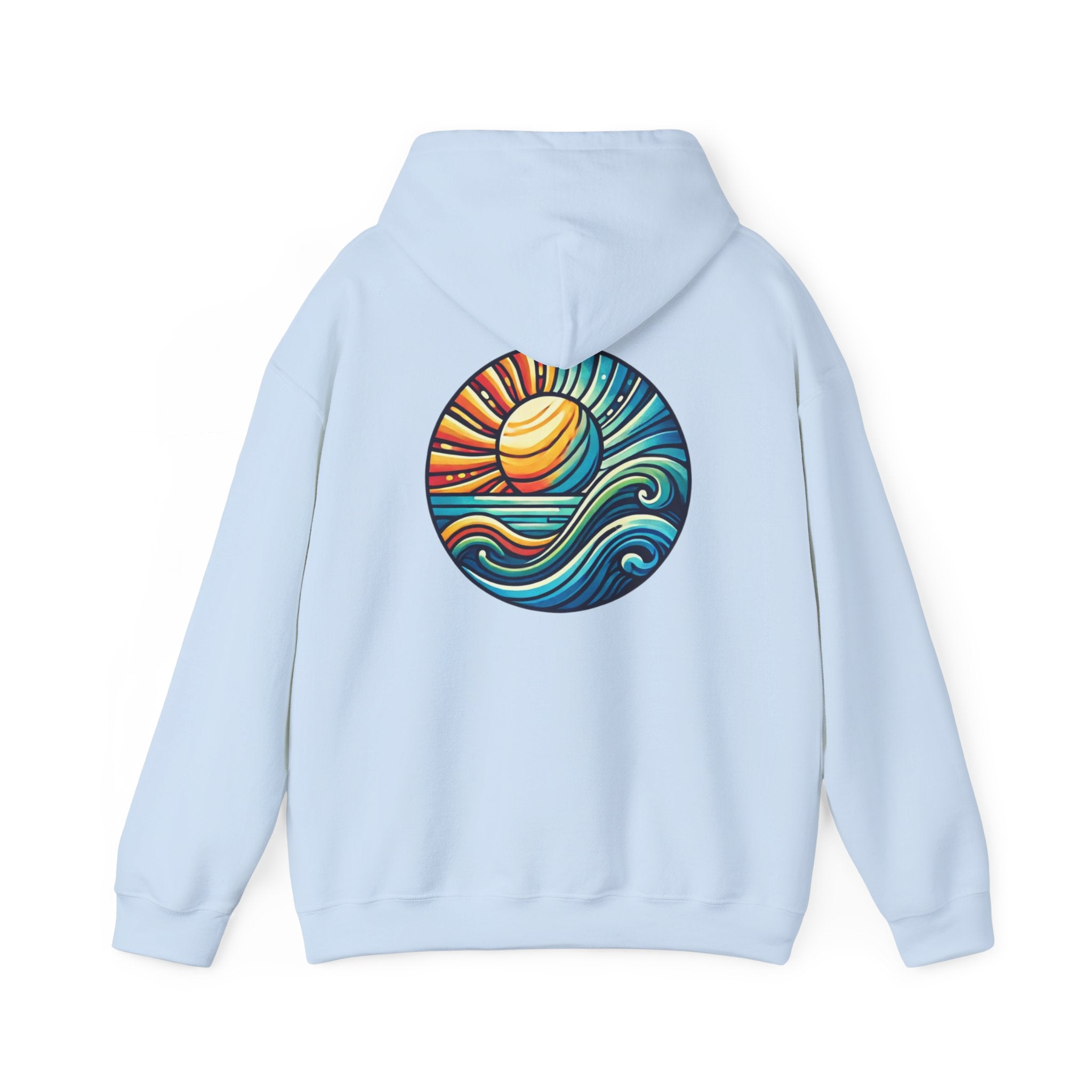 Embrace the laid-back coastal vibes with the Retro Sun & Wave Hoodie. Featuring a bold, colorful retro sun and ocean wave design on both front and back, this light blue hoodie captures the essence of beach life. Perfect for surfers, ocean lovers, and anyone who enjoys a cozy, stylish look, it’s a standout piece in any casual wardrobe.