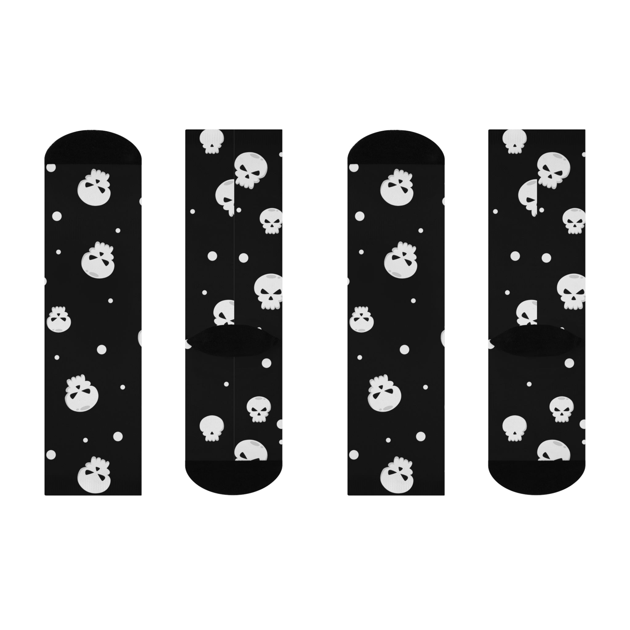 These cushioned DTG crew socks are a one-size style designed with both function and appearance in mind. With the fully cushioned heel-to-toe, these socks provide superior comfort, while the DTG print process allows for ultra-crisp, crease-free printing. Composed of 73% polyester, 18% nylon, 6% spandex, and 3% cotton, these socks are an elevated alternative to the typical sublimation sock and provide a clean, comfortable base for your all-over print designs. .: Material: 73% polyester, 18% nylon, 3% cotton, 6% spandex .: One size: comfortably fits women's size 5 US up to men's size 12 US .: 200 needle knit premium socks .: Cushioned bottoms