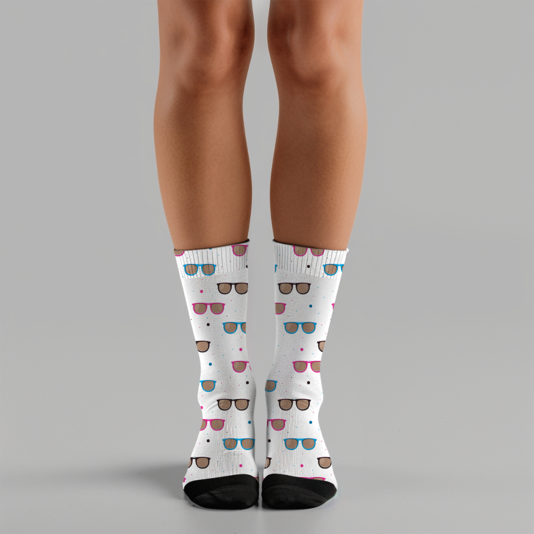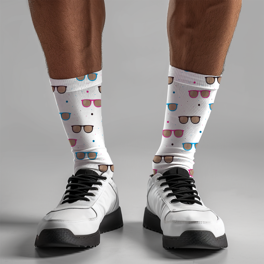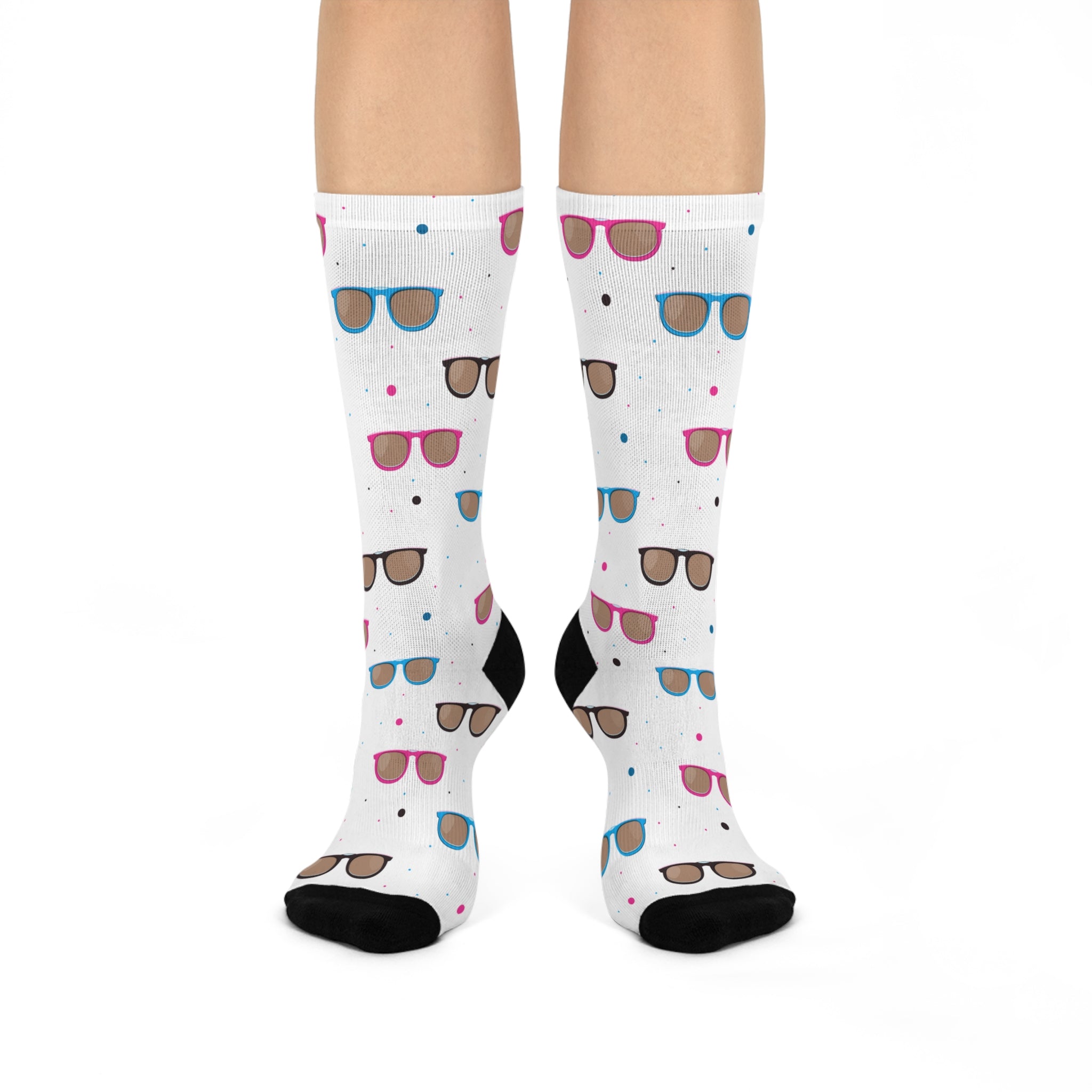 Add a bold splash of personality to your wardrobe with these Sunglasses Print Crew Socks. Featuring a fun and colorful retro sunglasses pattern, these socks bring a playful twist to any outfit. With cushioned bottoms and high-quality fabric, they’re designed to be as comfortable as they are stylish.