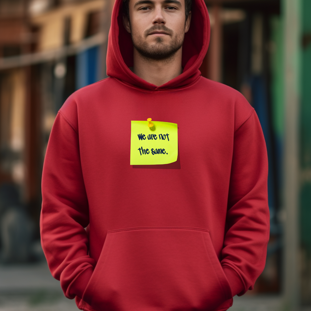 Make a statement with confidence in the We Are Not the Same Hoodie. This vibrant red unisex hoodie features the bold “We Are Not the Same” graphic on the front, letting you express your individuality while staying cozy. Its soft, heavy-blend fabric ensures all-day comfort, making it perfect for layering, casual outings, or showing off your unique style.